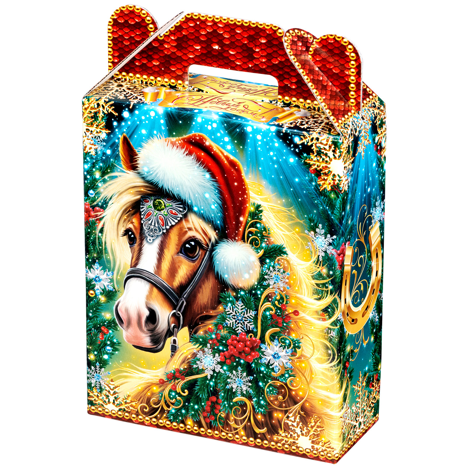 Не знаете, как создать новогоднее настроение для друзей и близких? Все просто! Подарите им сладкий подарок с изображением символа года. Подарочный набор “Конь Степан” - это компактная картонная коробочка, украшенная яркой иллюстрацией в виде огненно–рыжего коня в красном праздничном колпаке. Помимо привлекательного оформления данный подарок может легко порадовать своим разнообразным и вкусным наполнением: эта небольшая коробочка вместила в себя самые разнообразные и вкусные лакомства от ведущих кондитерских фабрик. С таким угощением любое чаепитие станет настоящим праздником!