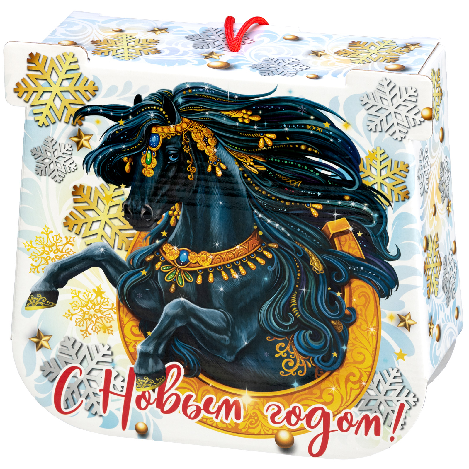 Как при помощи новогоднего подарка создать праздничное настроение на все 12 месяцев? Все просто - нужно подарить сладкий набор с изображением символа наступающего года. Немногие знают, но подкова с древних времен считается символом удачи - не просто так ведь именно ее в древности вешали при входе в дом. Данный подарочный набор повесить не получится, но вот зарядиться теплыми эмоциями от вкусных сладостей можно без труда! За счет оригинального оформления и вкусного сладкого наполнения, такой презент можно смело вручить сластене абсолютно любого возраста! Неповторимый вкус отборных сладостей и яркий дизайн упаковки никого не оставят равнодушным!