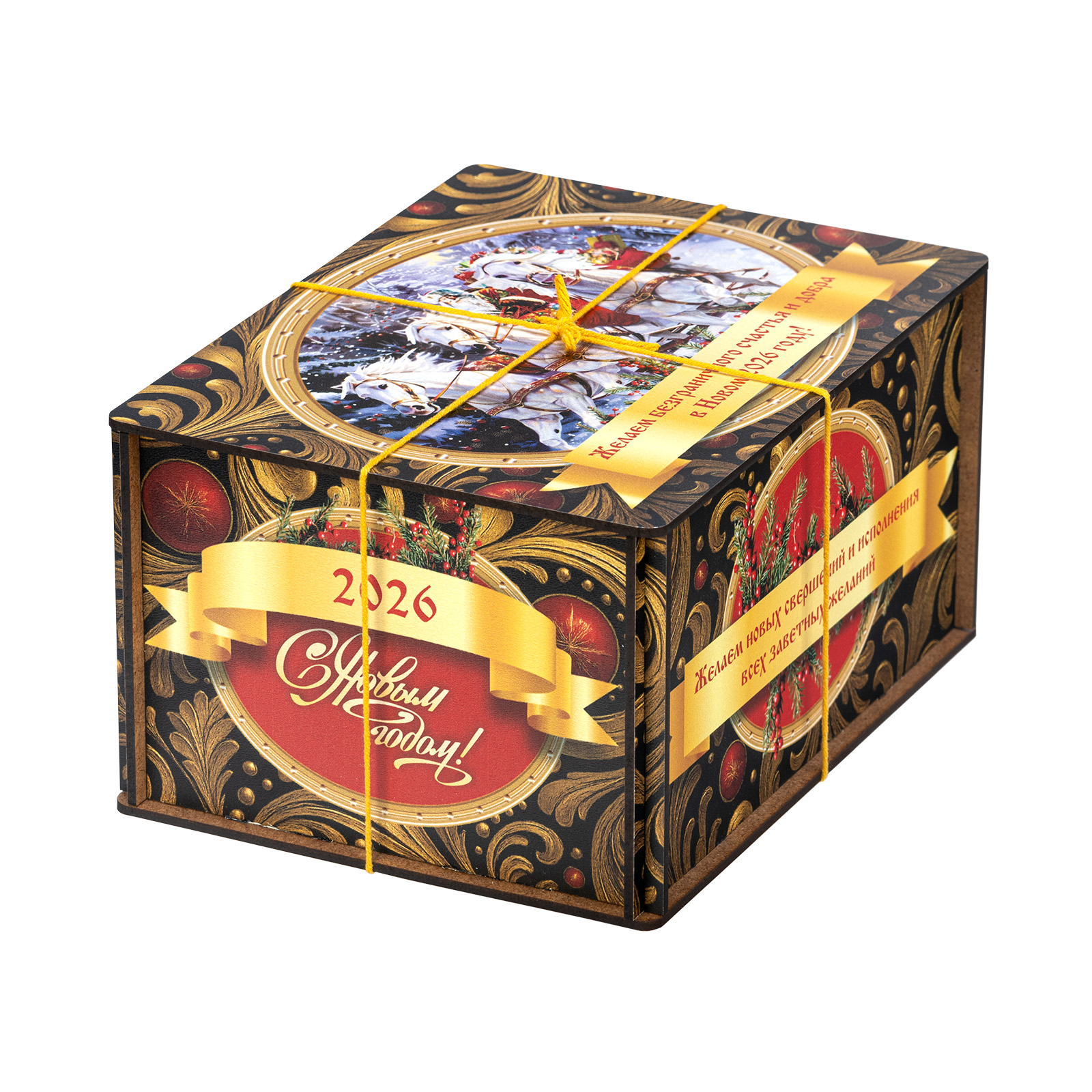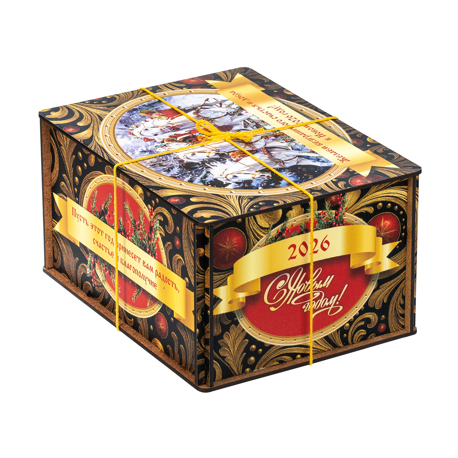 Ищете новогодний сладкий подарок для взрослого сластены? Тогда набор “Посылка Черный бархат” - это то, что вам нужно! В его состав входит целых полтора килограмма разнообразных отборных сладостей на любой вкус! В нем есть шоколадные конфеты с самыми разнообразными начинками, батончики, печенье, халва, а также многие другие любимые лакомства. Кроме сладкого наполнения, в состав подарка входит небольшой памятный сувенир в виде символа наступающего года. Все это бережно упаковано в празднично украшенный деревянный ящичек, перетянутой ярко-желтой ручкой-шнурком. Прям настоящая волшебная посылка!