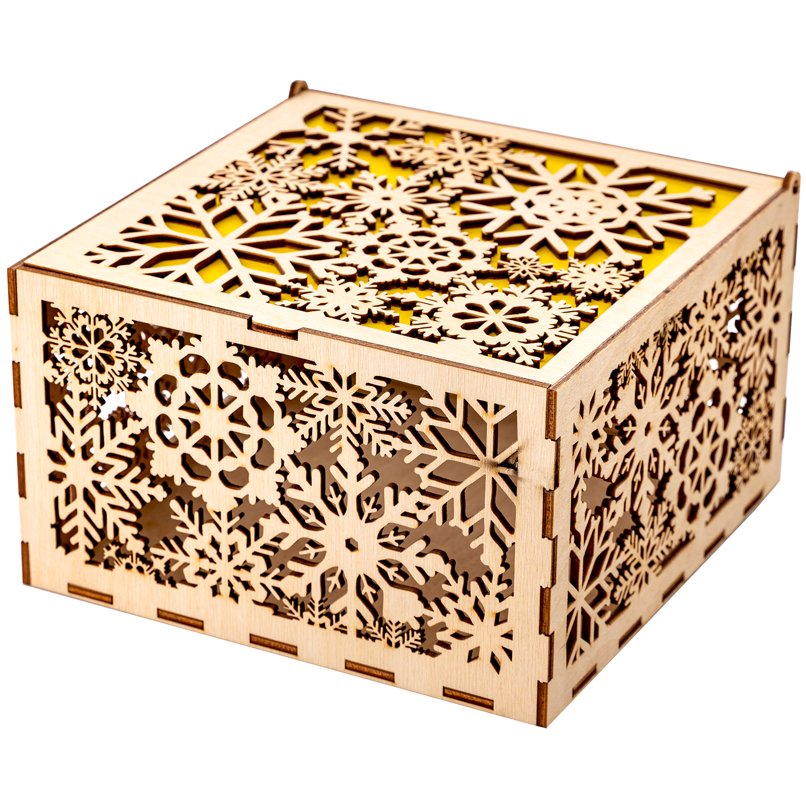 Подарок с оригинальным дизайном «Царица Зима» представлен в нашей коллекции в разделе для взрослых с желтой вставкой. Упаковка из дерева с новогодними резными узорами. По форме напоминает ажурную шкатулку. Крышка открывается вверх. Внутри короб наполнен только отборными кондитерскими изделиями от ведущих производителей нашей страны. Шоколадные конфеты с различными начинками, нежнейшие десерты и другие лакомства обязательно придутся по вкусу каждому. Подарок можно подарить коллегам, партнерам по бизнесу, преподавателям, воспитателям, а также любимым мамам и бабушкам. Практичность упаковки позволит использовать ее в дальнейшем для хранения мелочей, как конфетницу или предмет новогоднего интерьера.
